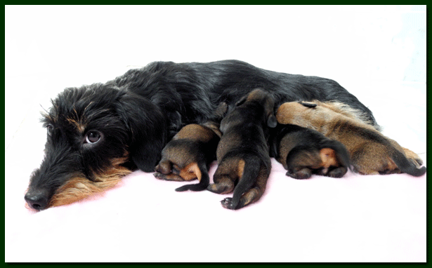 Anton und Püppi haben uns ganz süsse Sonntagskinder geschenkt. Wir freuen uns sehr über das kleine Quartett, das am 10. März 2013 innerhalb von 4 Stunden das Licht der Welt erblickt hat. Mama Püppi und ihren Kindern geht es sehr gut; sie wachsen und gedeihen prächtig. ![]() Von diesem Wurf verspreche ich mir sehr viel, da Püppi aus Weltsiegerlinie stammt und auch unser MultiCh. Anton sehr erfolgreich auf Ausstellungen geführt wurde. |
